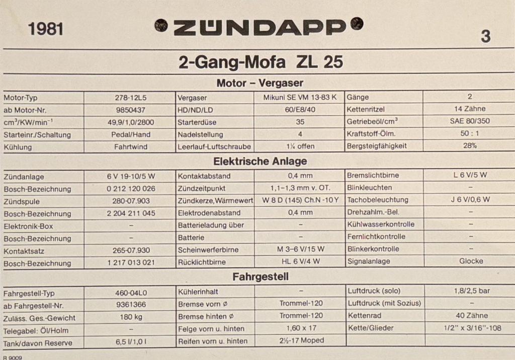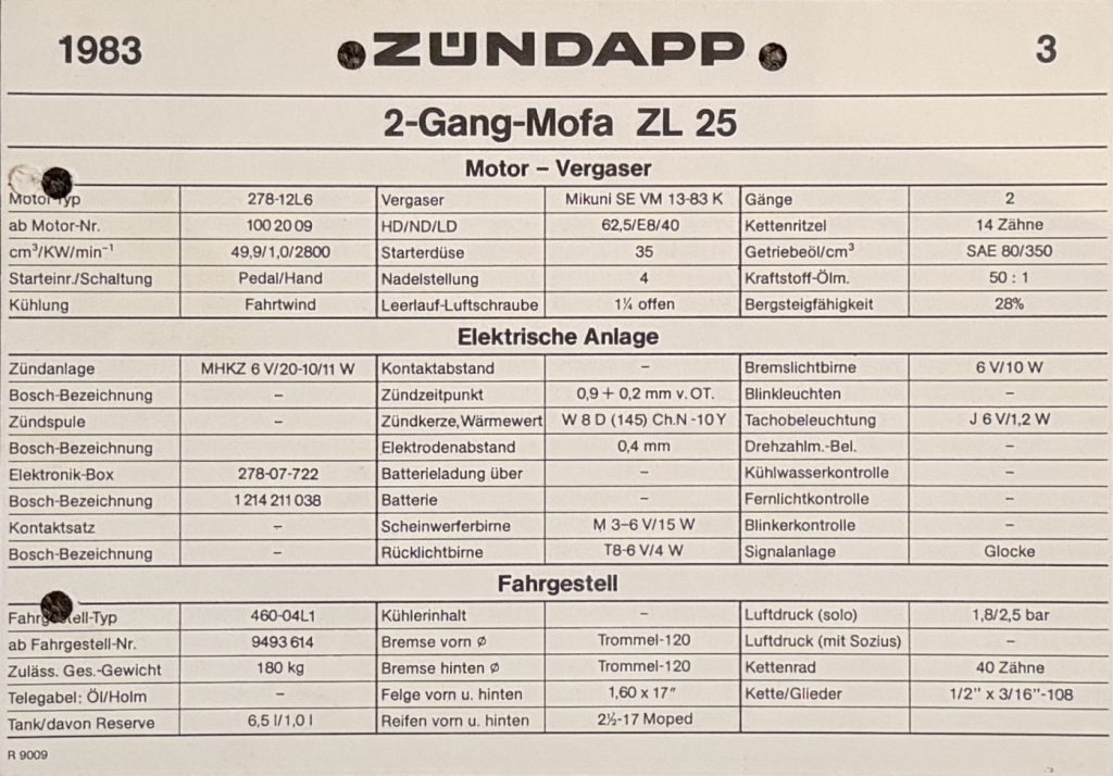 ZÜNDAPP – Technische Daten