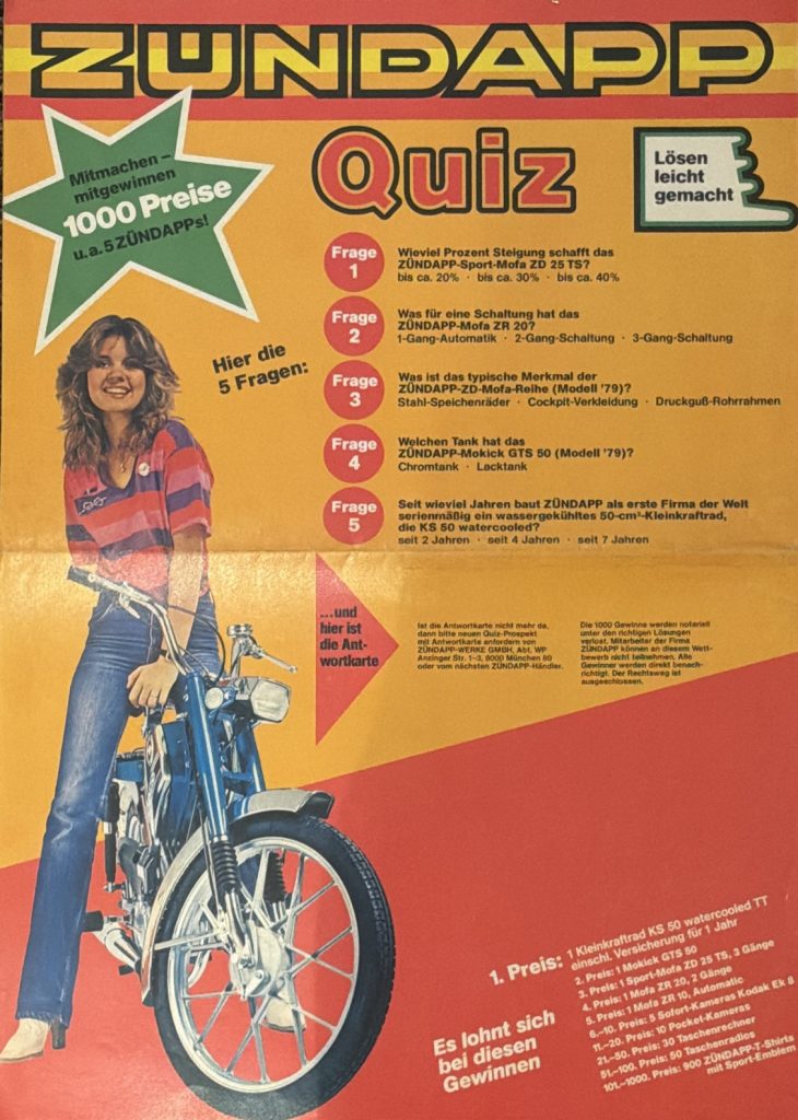 1979 – QUIZ QUIZ 1979 – HIER KLICKEN 1980 – DAS GROSSE PREISAUSSCHREIBEN ZÜNDAPP WETTBEWERB 1980 – HIER KLICKEN